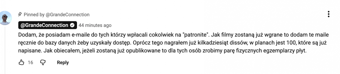 „Nie wyobrażam sobie jak miałbym kogokolwiek oszukać. Projekt to jest »chwalebne« przedsięwzięcie. Nie chciałem wrzucać czegoś na odwal tylko być przekonanym, że każdy kto zamówił uzna to za jedną z lepszych inwestycji w swoim życiu” – dodaje YouTuber.