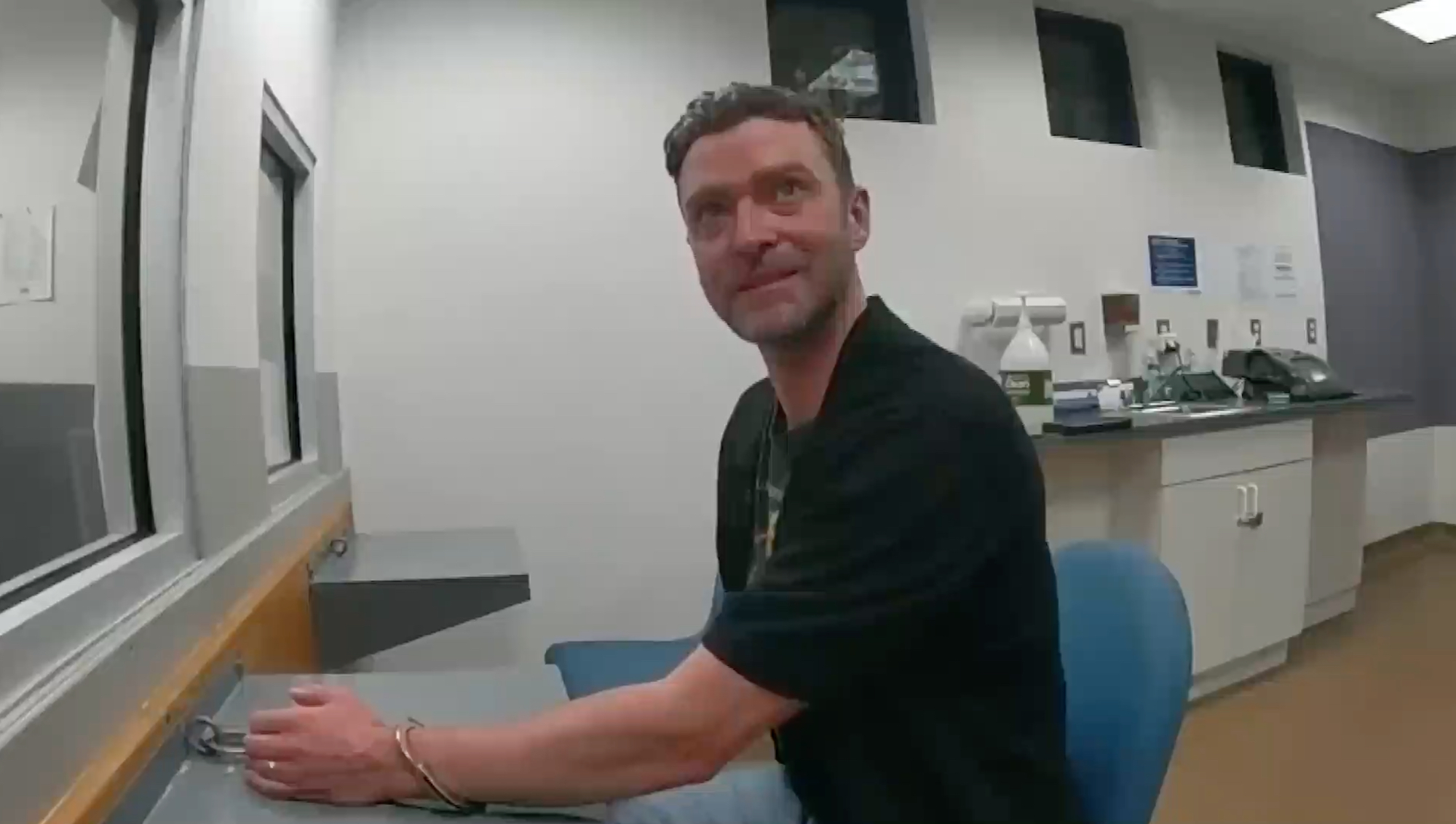 Znacznie mniej żartobliwie wyglądała dalsza część nagrania. Justin Timberlake był wyraźnie zaskoczony faktem, że musi spędzić noc w celi.
