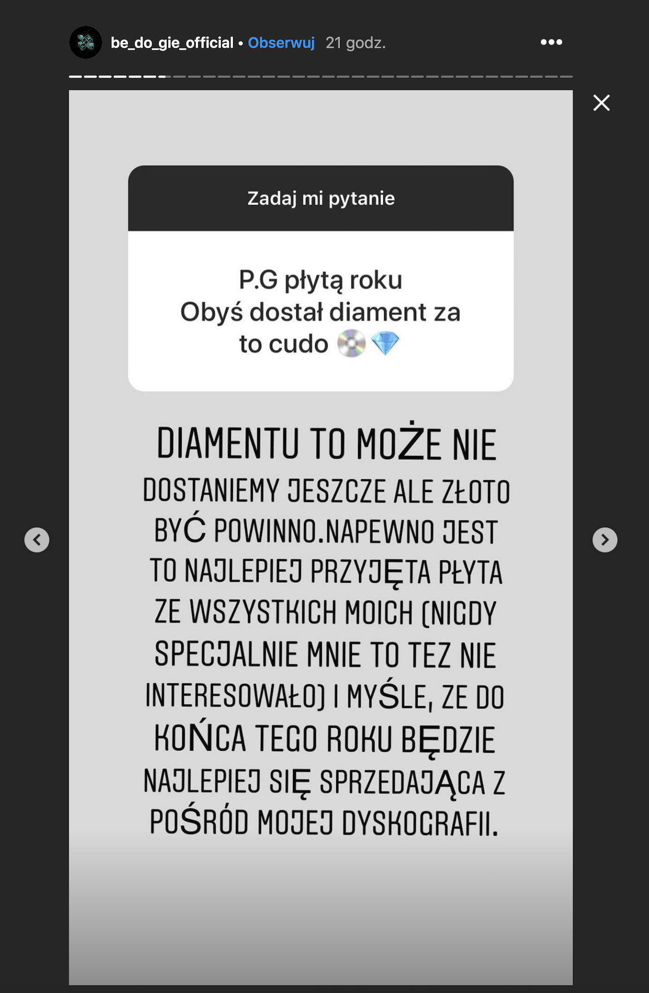 P.G płytą roku, obyś dostal diament za to cudo.