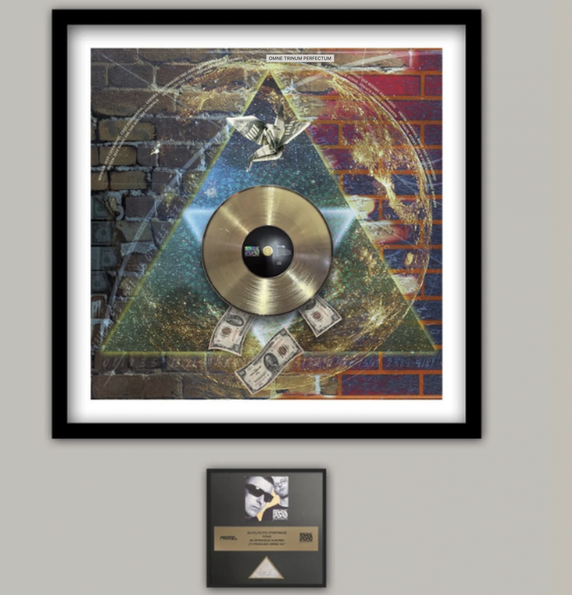 Tryptyk nie zamykał płyt w klasycznej oprawie. Zamiast tego, krążki stanowią centralny element trzech wielkoformatowych paneli, osadzonych w geometrycznych wzorach i motywach origami. Poniżej portretów dwóch twórców znajdują się podpisy Adriana Purgała i Rafała Poniedzielskiego oraz ich podpisy graficzne, co nadaje pracy wyjątkowej autentyczności.