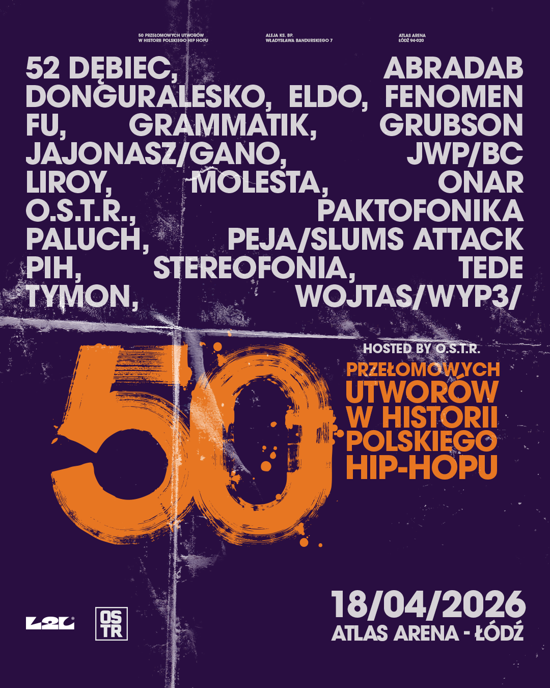 Już 18 kwietnia 2026 roku w łódzkiej Atlas Arena odbędzie się wyjątkowe wydarzenie dla fanów rapu – „50 Przełomowych Utworów w Historii Polskiego Hip-Hopu”. Koncert poprowadzi O.S.T.R., jeden z najbardziej wpływowych artystów na polskiej scenie rapowej.