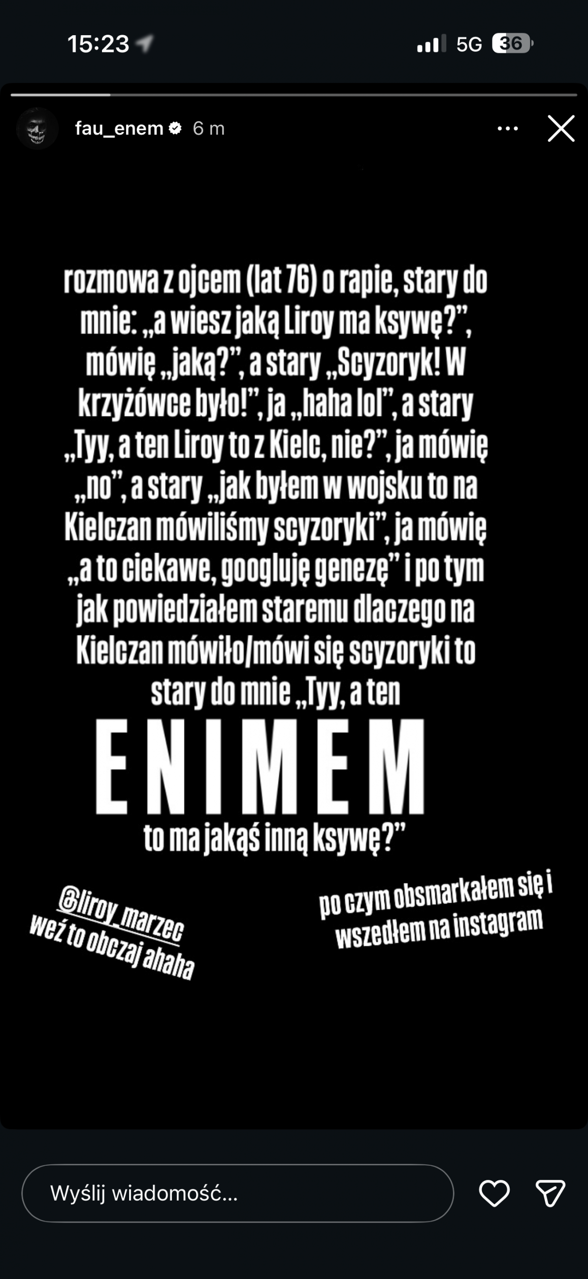 VNM podzielił się na swoim InstaStory zabawnym opisem rozmowy z ojcem, który – choć rap zna raczej z doskoku – zaskoczył syna swoją wiedzą. Punktem wyjścia okazał się… Liroy.